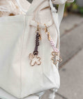 Den lyserøde nøglering fra IGEN er designet med inspiration fra vores logo-swirl, og skabt til at fungere som både nøglering, bag charm og bæltestrops-accessory. Ved hjælp af den praktiske karabinhage kan den nemlig nemt sættes fast på din taske, dine nøgler eller bæres i bæltestroppen for et personligt udtryk.