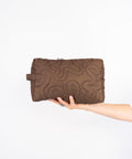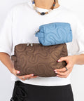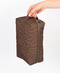 Beauty Swirl Bag i mega-størrelse kombinerer funktionalitet med et blødt, quiltet design og IGENs karakteristiske swirl-mønster – ideel til længere rejser og weekendture, hvor du skal hele selfcare-rutinen med. Derudover har toilettasken hank, IGEN-lynlås og datomærkning, så altid har styr på produktets levetid.