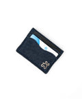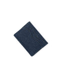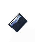 The exterior of the card holder is made from recycled denim. The material ensures a durable card holder that will wear beautifully with use.